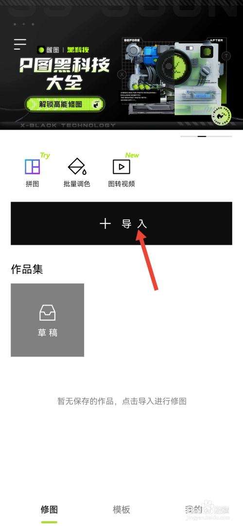 首先打开醒图,点击导入,导入要换的图片,后面那个背景图。