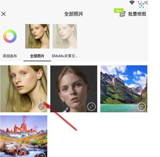 具体操作教程2、在添加画布、全部图片和共享文件的功能窗口中,切换到全部图片功能窗口,在展示的全部图片中选中需要处理的图片素材,勾选并确认导入即可。