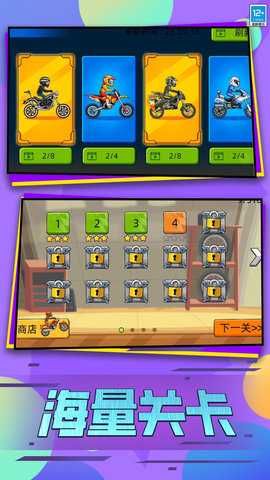 3、自定义摩托车:游戏支持玩家自定义摩托车的外观和性能,玩家可以根据自己的喜好和需求,打造属于自己的专属赛车,展示个性和风采。