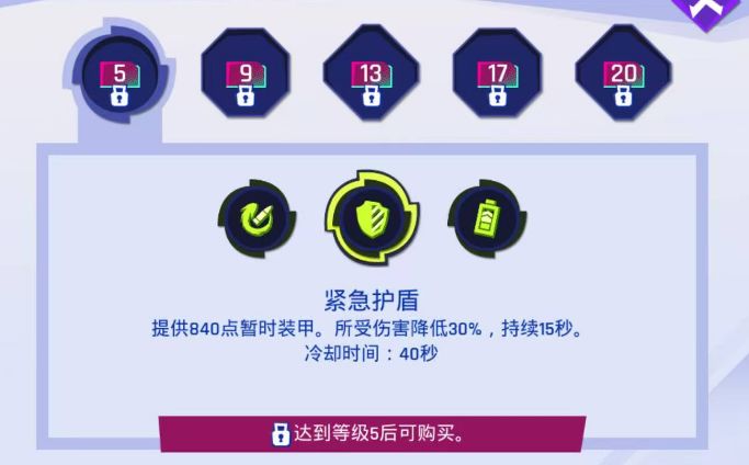 · 紧急护盾:每秒恢复 6% 装甲值,持续 10 秒