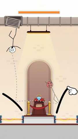 2、玩家需要通过手指在屏幕上绘制路径,确保火柴人能够安全弹跳并避开障碍物,尽可能顺利到达终点。