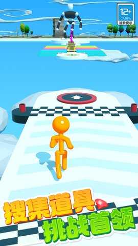 1、玩家需要选择自己的角色,进入赛道后,灵活控制橡皮人,尽量避开赛道上的障碍物,保持快速前进。