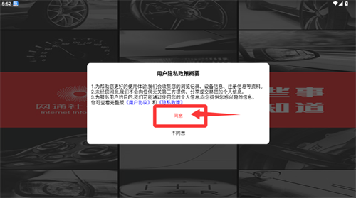 1、先浏览隐私条款摘要,点击同意进入下一步。