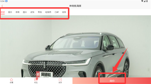 4、选择具体车款后,可以查阅完整参数、市场价格,并支持在线提交询价申请。