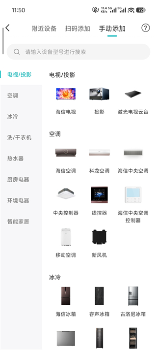 1、打开海信爱家App → 进入首页,点击 “+ 添加设备”