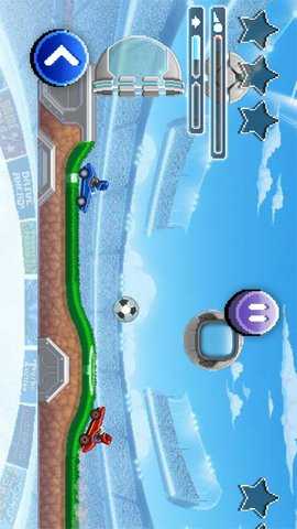 4、在适当的时候,玩家可以点击屏幕让赛车跳跃,尝试将足球射入对方的球门,争取得分。