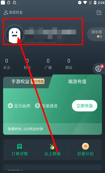 1、打开网易云游戏平台进入个人中心,找到手游权益,点击“开通会员”。